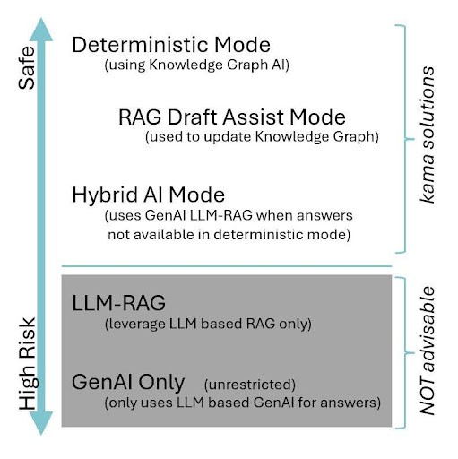 GenAI is powerful but unpredictable. It can deliver quick answers, but not always accurate ones. That’s why kama.ai introduced GenAI’s Sober Second Mind®. It’s a control layer that determines when to use deterministic reasoning and when to leverage generative capabilities.